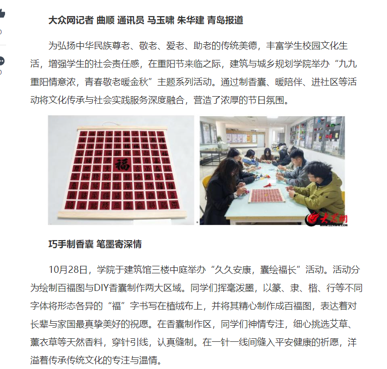 【大众网·青岛】青岛理工大学建筑与城乡规划学院开展“九九重阳情意浓,青春敬老暖...