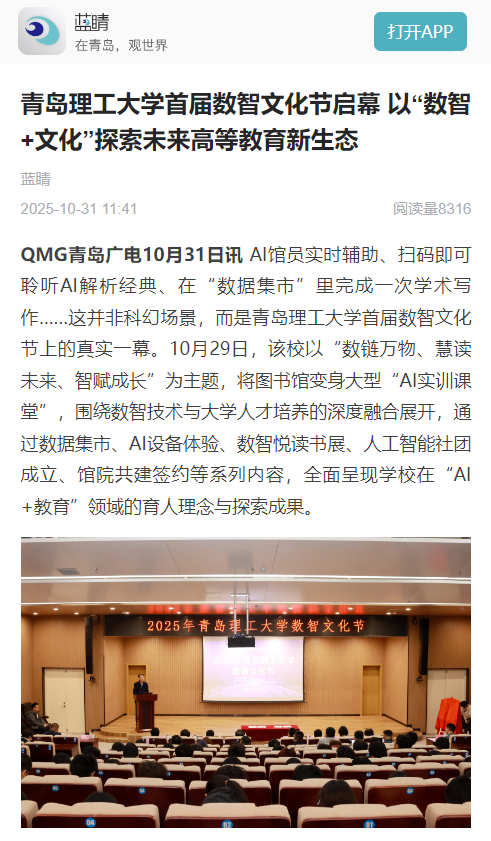 【蓝睛】青岛理工大学首届数智文化节启幕 以“数智+文化”探索未来高等教育新生态