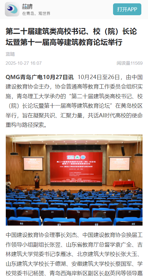 【蓝睛】第二十届建筑类高校书记、校(院)长论坛暨第十一届高等建筑教育论坛举行