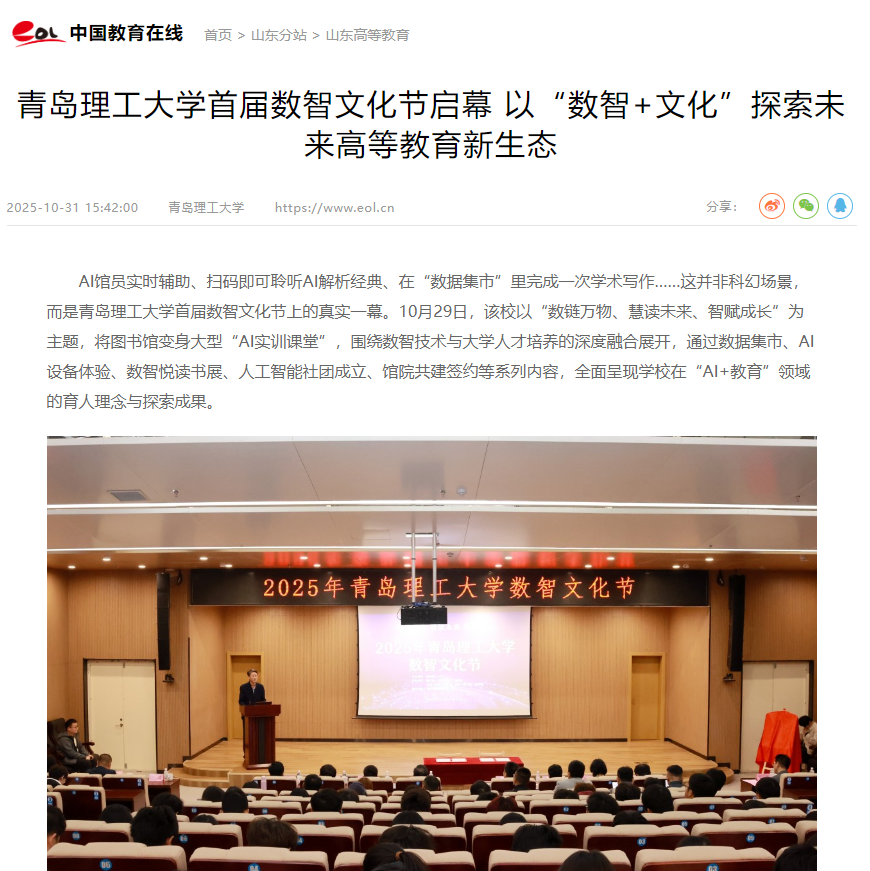 【中国教育在线】青岛理工大学首届数智文化节启幕 以“数智+文化”探索未来高等教育新生态