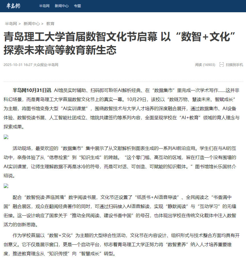 【大众报业·半岛网】青岛理工大学首届数智文化节启幕 以“数智+文化”探索未来高等教育新生态