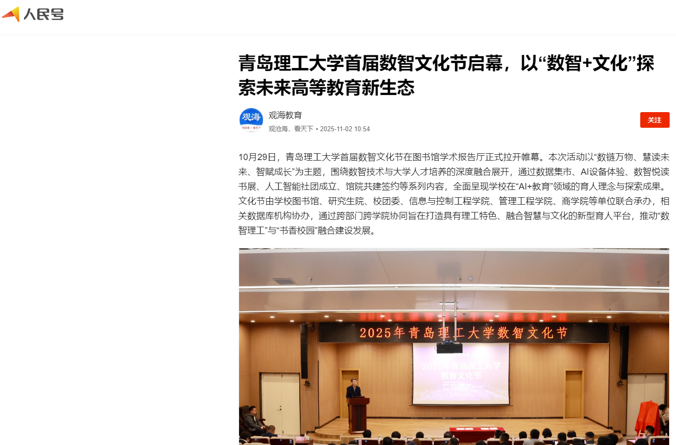 【人民号·观海教育】青岛理工大学首届数智文化节启幕,以“数智+文化”探索未来高等教育新生态