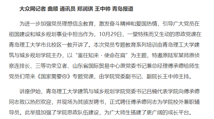 【大众网·青岛】青岛理工大学建筑与城乡规划学院:一堂特殊又生动的思政课激发广大...