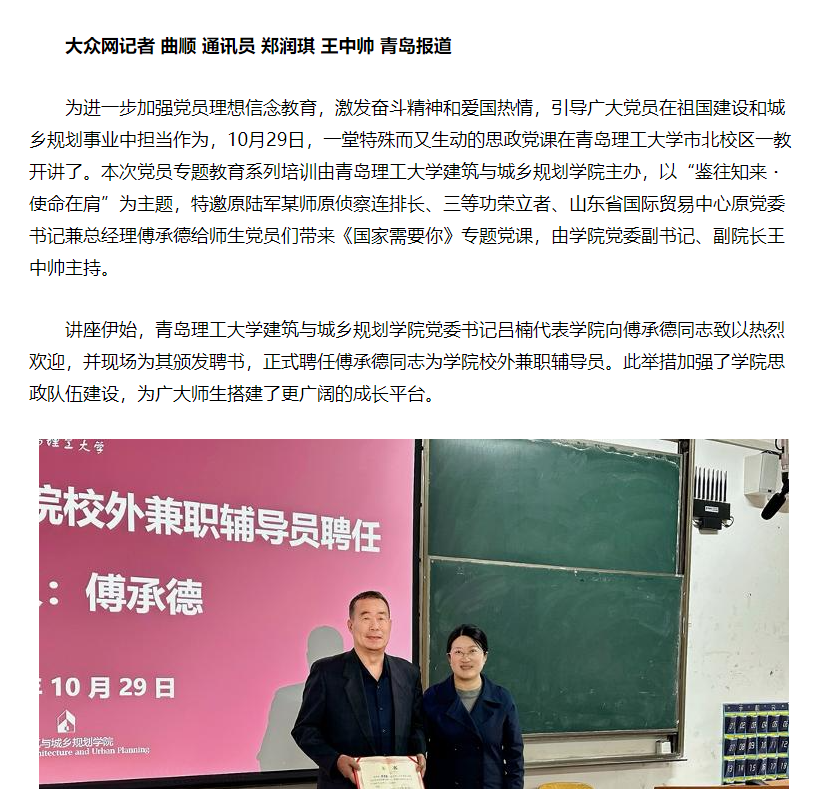 【大众网·青岛】青岛理工大学建筑与城乡规划学院:一堂特殊又生动的思政课激发广大党员爱国热情