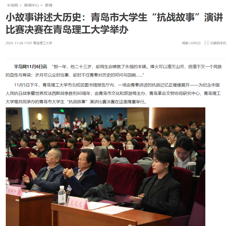 【半岛网】小故事讲述大历史:青岛市大学生“抗战故事”演讲比赛决赛在青岛理工大学举办