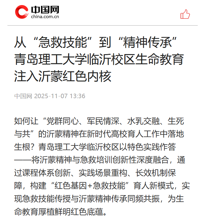 【中国网】从“急救技能”到“精神传承” 青岛理工大学临沂校区生命教育注入沂蒙红色内核