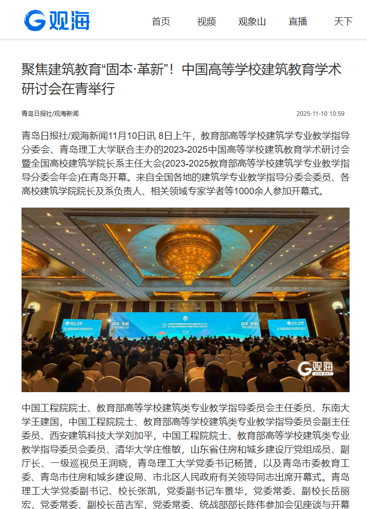 【齐鲁晚报青岛教育】2023-2025中国高等学校建筑教育学术研讨会在青岛开幕