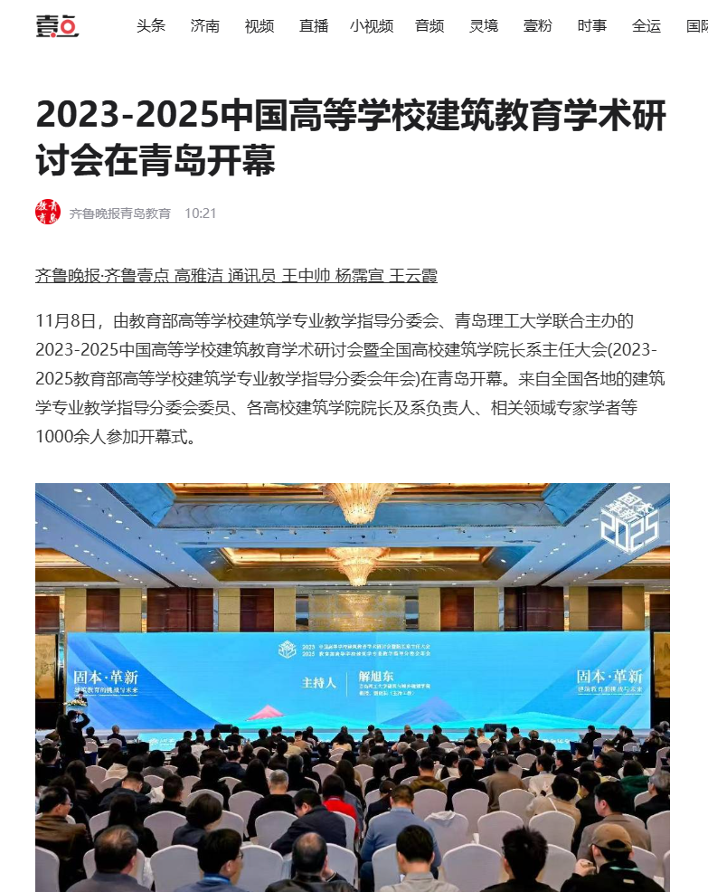 【齐鲁晚报青岛教育】2023-2025中国高等学校建筑教育学术研讨会在青岛开幕