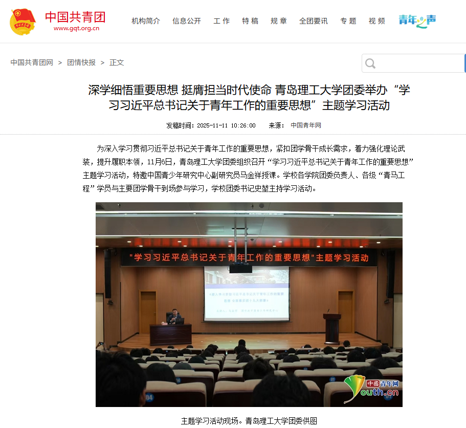 【中国共青团】深学细悟重要思想 挺膺担当时代使命 青岛理工大学团委举办“学习习近平总书记关于青年工作的重要思想”主题学习活动