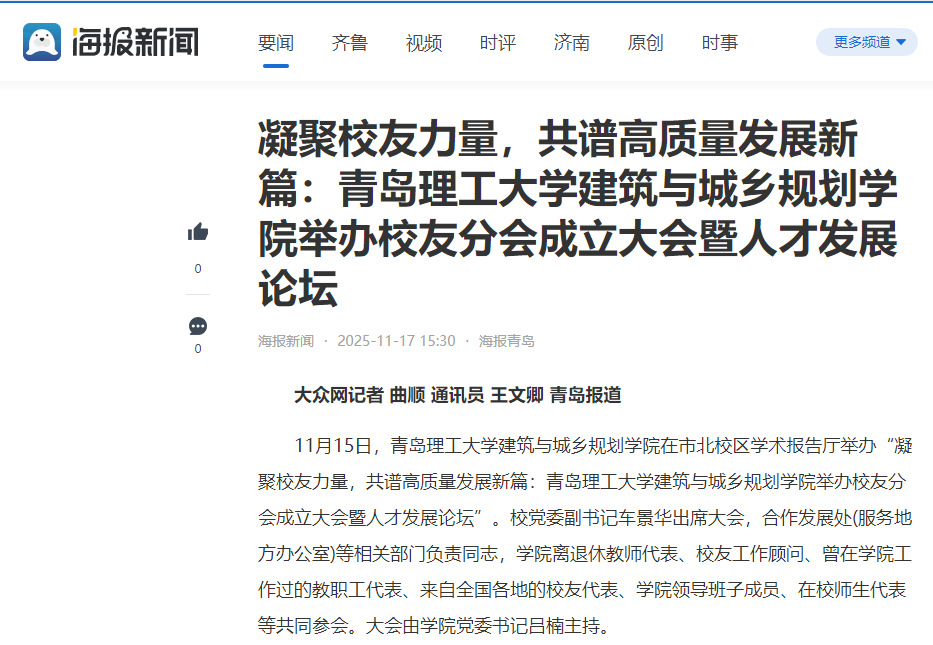 【海报新闻 海报青岛】凝聚校友力量,共谱高质量发展新篇:青岛理工大学建筑与城乡规划学院举办校友分会成立大会暨人才发展论坛