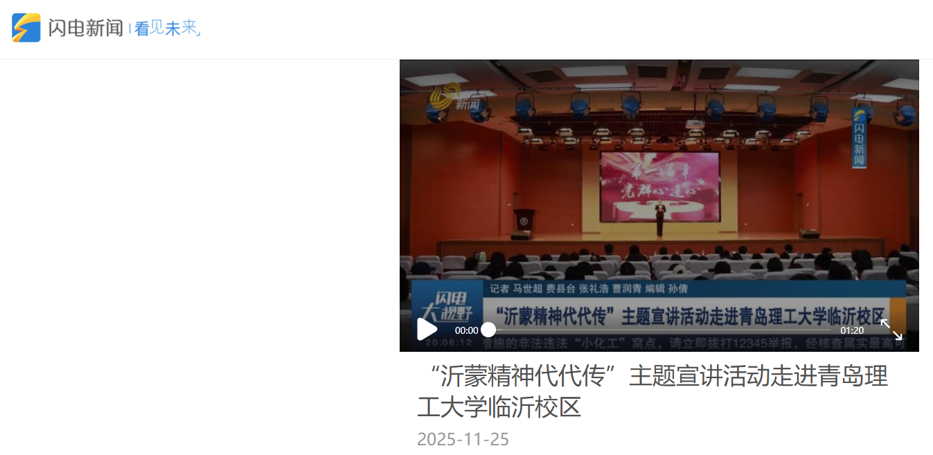 【闪电新闻】“沂蒙精神代代传”主题宣讲活动走进青岛理工大学临沂校区