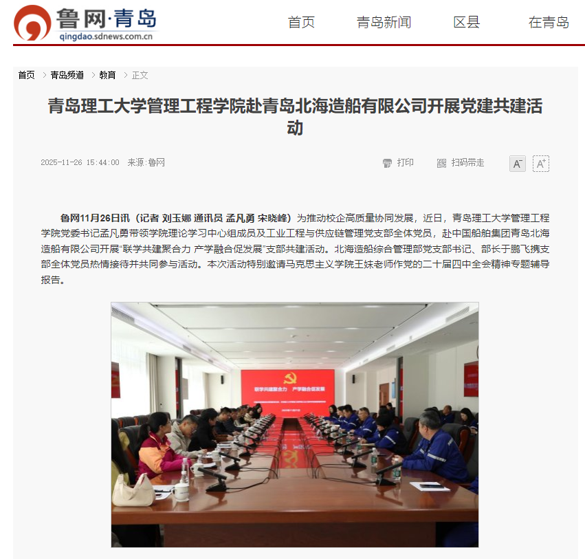 【鲁网·青岛】青岛理工大学管理工程学院赴青岛北海造船有限公司开展党建共建活动