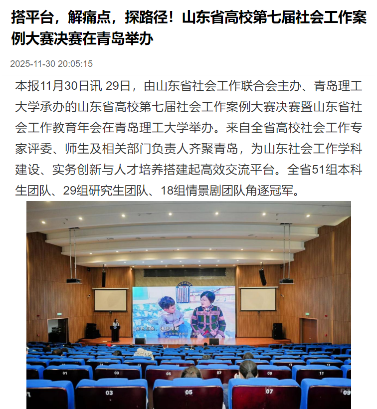【青岛财经网】山东省高校第七届社会工作案例大赛决赛暨山东省社会工作教育年会在...