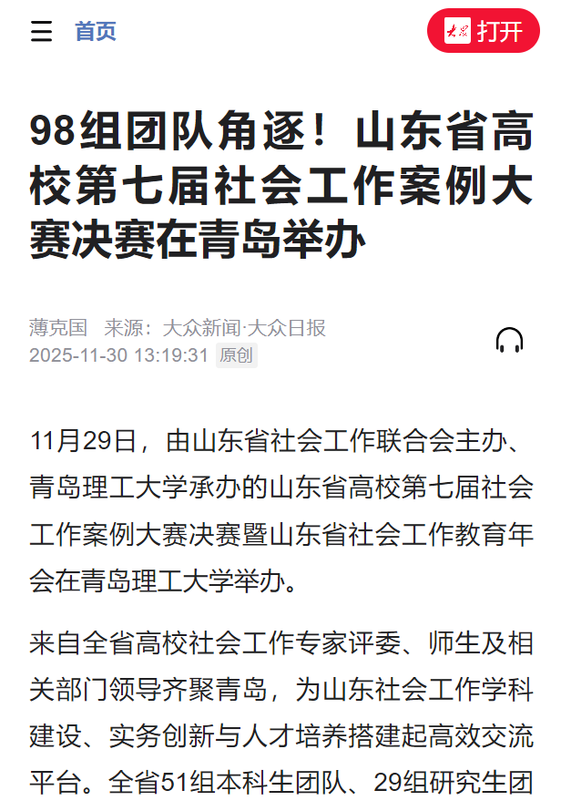 【大众网】山东省高校第七届社会工作案例大赛决赛暨山东省社会工作教育年会在青岛...