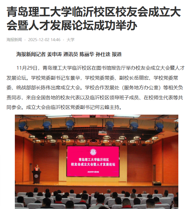 【大众网】青岛理工大学临沂校区校友会成立大会暨人才发展论坛成功举办