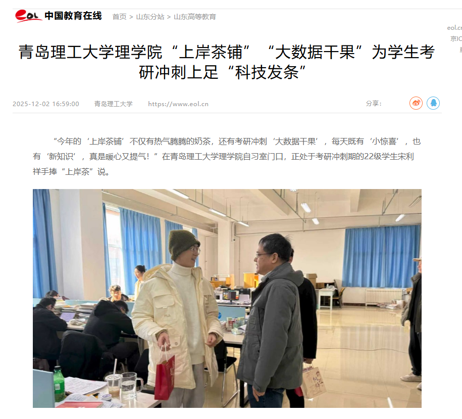 【中国教育在线】青岛理工大学理学院“上岸茶铺”“大数据干果”为学生考研冲刺上足“科技发条”