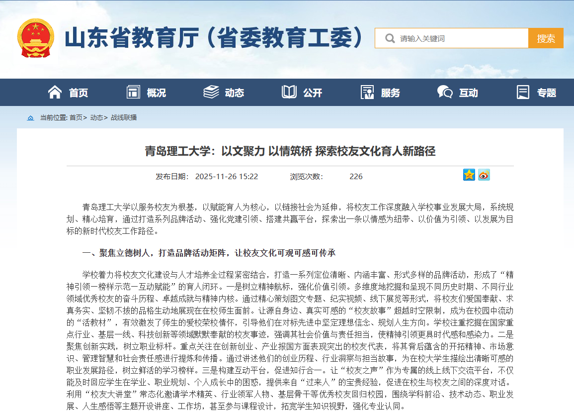 【山东省教育厅】青岛理工大学:以文聚力 以情筑桥 探索校友文化育人新路径
