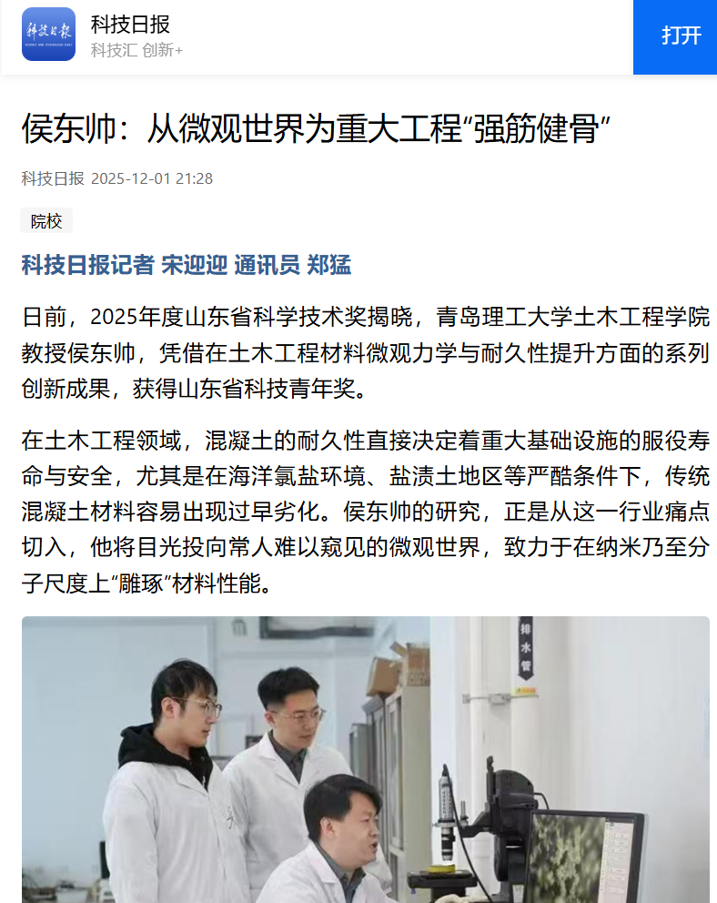 【中国科技网】侯东帅:从微观世界为重大工程“强筋健骨”