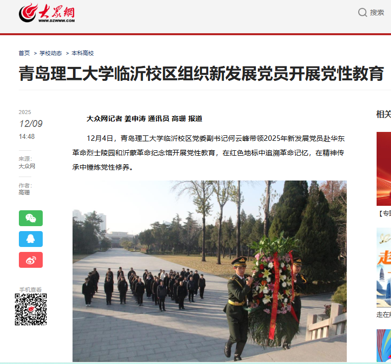 【大众网】青岛理工大学临沂校区组织新发展党员开展党性教育
