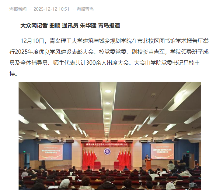【海报新闻】以优良学风涵养时代新人 青岛理工大学建筑与城乡规划学院召开2025年度学风建设总结大会
