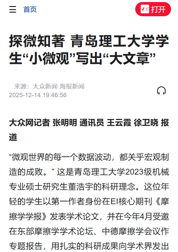 【大众网】探微知著 青岛理工大学学生“小微观”写出“大文章”