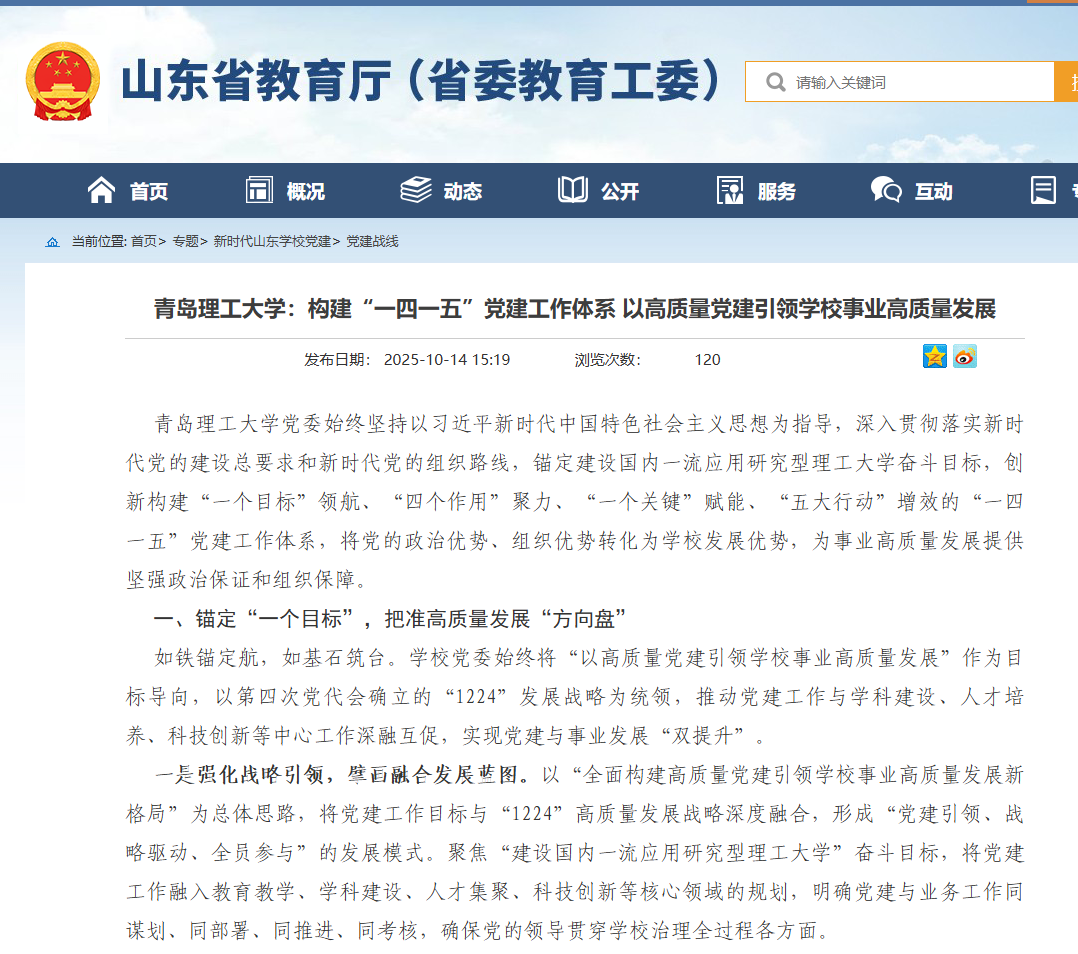 【山东省教育厅】青岛理工大学:构建“一四一五”党建工作体系 以高质量党建引领学校事业高质量发展