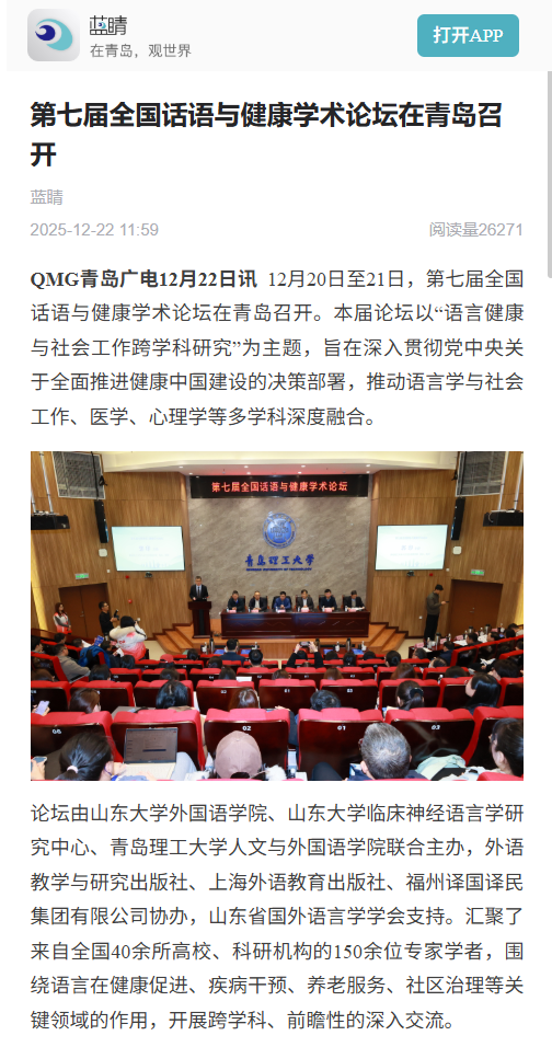 【蓝睛】第七届全国话语与健康学术论坛在青岛召开