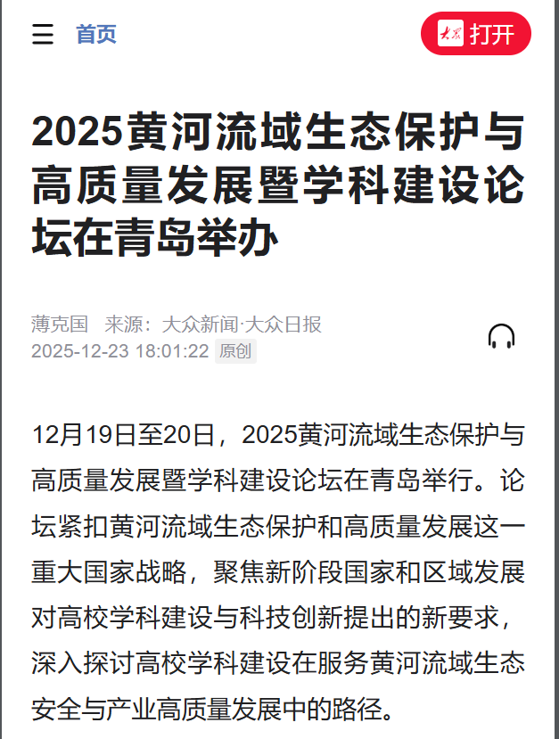 【大众网】2025黄河流域生态保护与高质量发展暨学科建设论坛在青岛举办