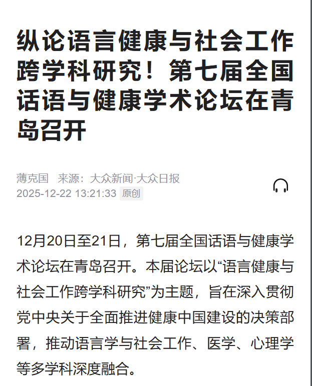 【大众新闻·大众日报】纵论语言健康与社会工作跨学科研究!第七届全国话语与健康学术论坛在青岛召开