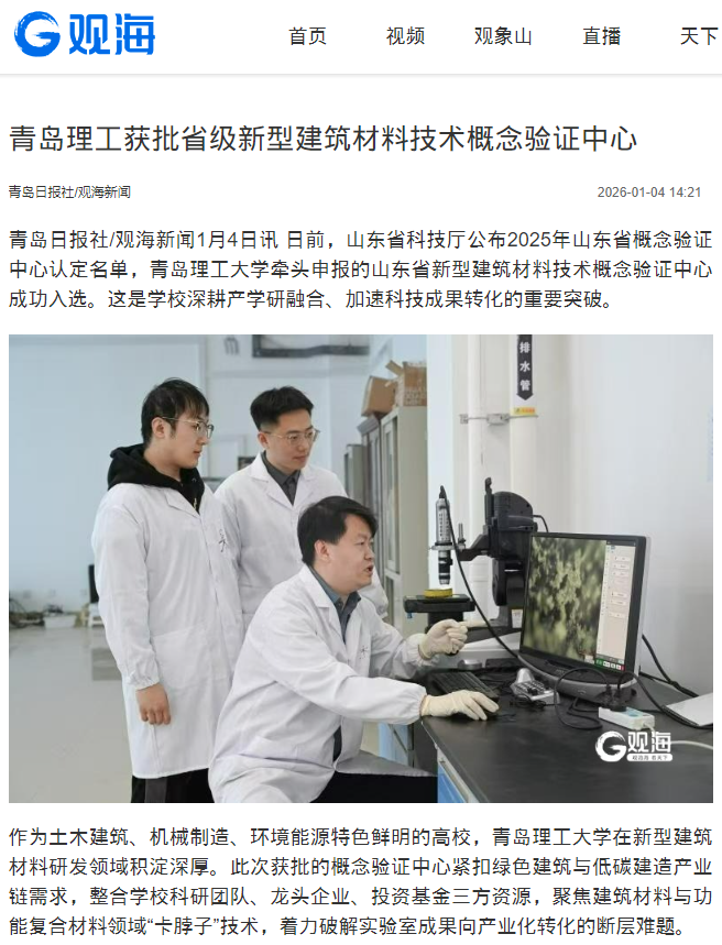 【青岛日报社/观海新闻】青岛理工获批省级新型建筑材料技术概念验证中心