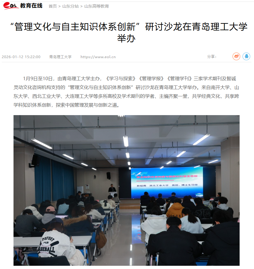 【中国教育在线】“管理文化与自主知识体系创新”研讨沙龙在青岛理工大学举办