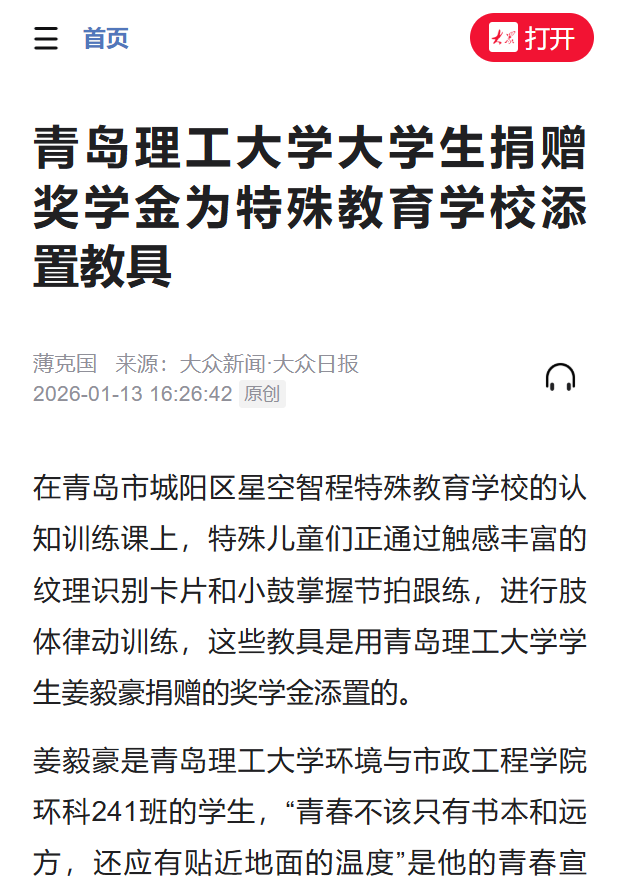 【大众新闻·大众日报】青岛理工大学大学生捐赠奖学金为特殊教育学校添置教具