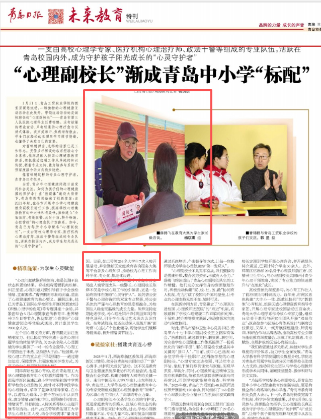 【青岛日报】“心理副校长”渐成青岛中小学“标配”