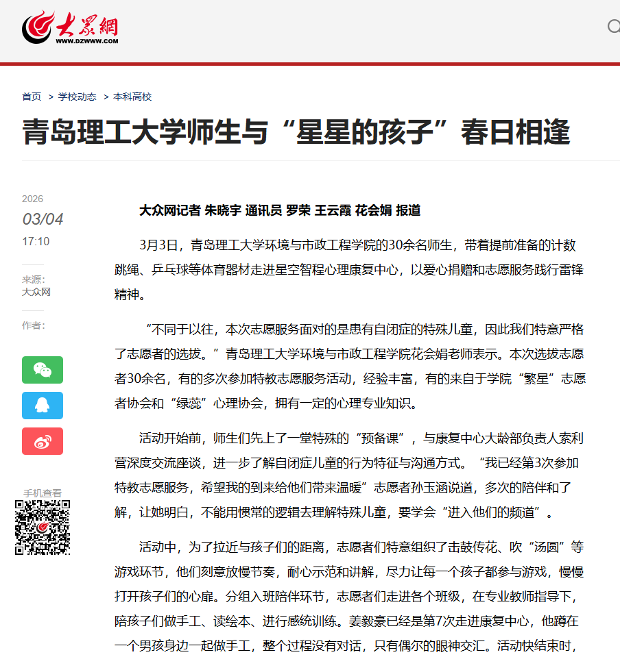 【大众网】青岛理工大学师生与“星星的孩子”春日相逢