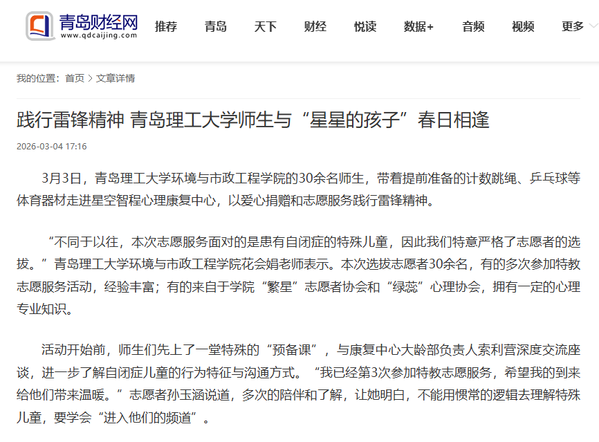 【青岛财经网】践行雷锋精神,青岛理工大学师生与“星星的孩子”春日相逢