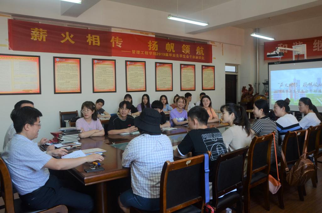 6月23日上午,管理工程学院于二教410会议室举办学生会新老常委座谈会,学院党总支副书记于利俊,学工办主任陈永亮以及学生会2017-2018、2018-2019学年各常委出席会议,陈永亮担任会议主持人。
