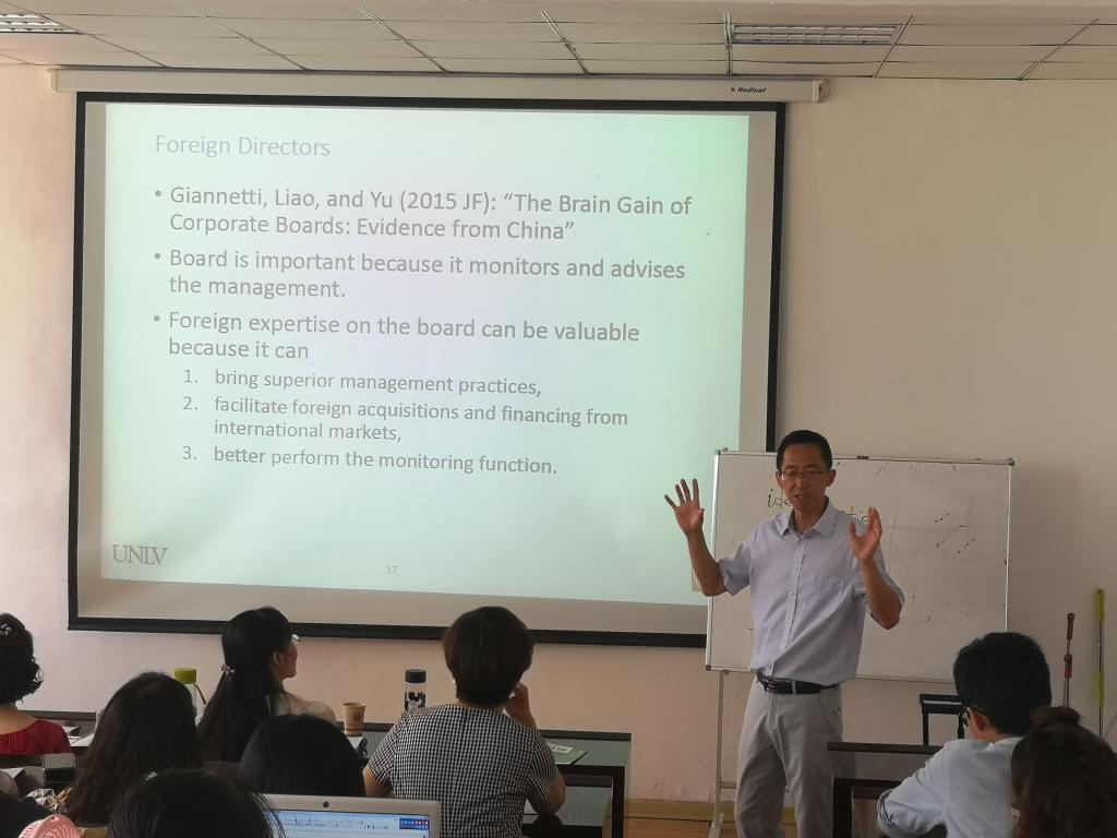 7月3日下午,商学院举办“西海岸商学论坛(第十期)”学术讲座活动。本期邀请美国内华达大学拉斯维加斯校区金融系终身教授迟健心担任主讲,主讲题目为“如何用中国数据在国际领先金融期刊发表论文”。商学院副院长乐国林主持本次活动,商学院会计系、财务管理系老师及学院研究生参加本次活动。