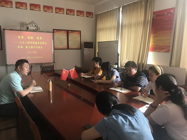 为更好的指导学生参与暑期社会实践活动,7月5日上午,土木工程学院于一教409会议室举行第十九期辅导员职业素养、能力提升交流会,围绕暑期社会实践工作进行了交流分享。学院党总支副书记邵先锋及全体辅导员老师参加本次交流会。