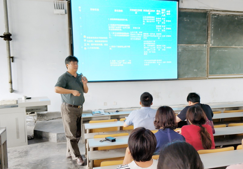 副院长李绍纯就“教育服务新旧动能转换专业对接产业项目目标”进行了专题汇报,就如何在本科教育过程中主动对接产业、融合产业特色、创新教学管理模式、完善协同育人机制、学科专业一体化建设等方面的任务进行了解读分析,号召大家共同努力达成目标。