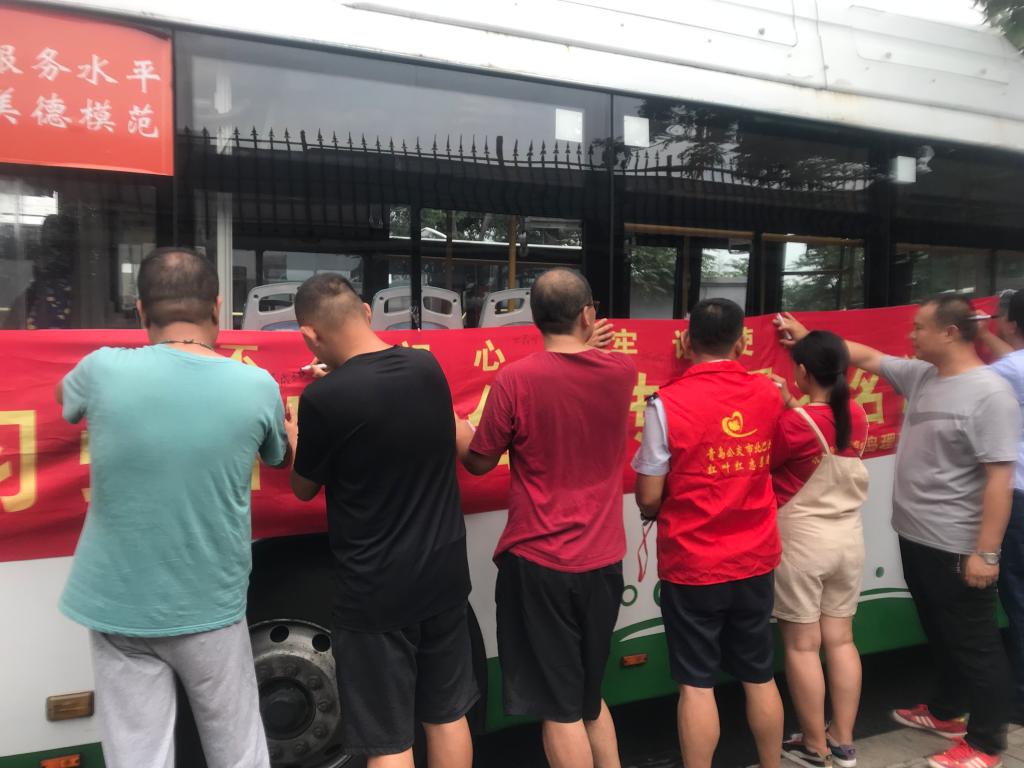随后,志愿者们走进车厢为乘客宣讲“学习强国”,在帮助他们下载、注册的同时,耐心地教大家如何使用“学习强国”。许多乘客积极下载“学习强国”,并对平台里的内容表示赞赏。“平时工作忙,事情多,没有时间静下心来学习,有了这个平台,随时随地打开就能查看国家最新动态,不仅能了解祖国的大好河山和祖国历史,还能学习烹饪、听歌、看电影,真好!”一位乘客说道。“一直听说过‘学习强国’,却没接触过。今天在你们的帮助下下载了,谢谢你们!”“请问,社会主义民主政治的本质特征是什么?A.党的领导;B.人民当家做主;C.依法治国。请选择!”除了进行现场宣讲外,公交集团志愿者们还提前准备了“学习强国”知识问答小卡片,动员乘客踊跃答题,回答正确的乘客可以获得小礼品。活动最后,志愿者们与乘客纷纷在‘学习强国’平台宣传横幅上签字,大家表示今后要做“学习型”社会的宣传者与践行者。