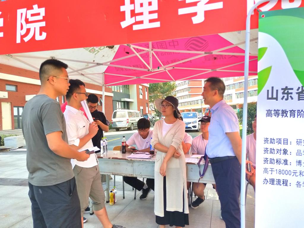 8月31日,理学院在嘉陵江路校区北区广场,进行2019级研究生新生报到的迎新工作。上午7点,辅导员公圆圆和志愿者们在报到现场准备就绪,大家以饱满的精神面貌迎接八方莘莘学子。