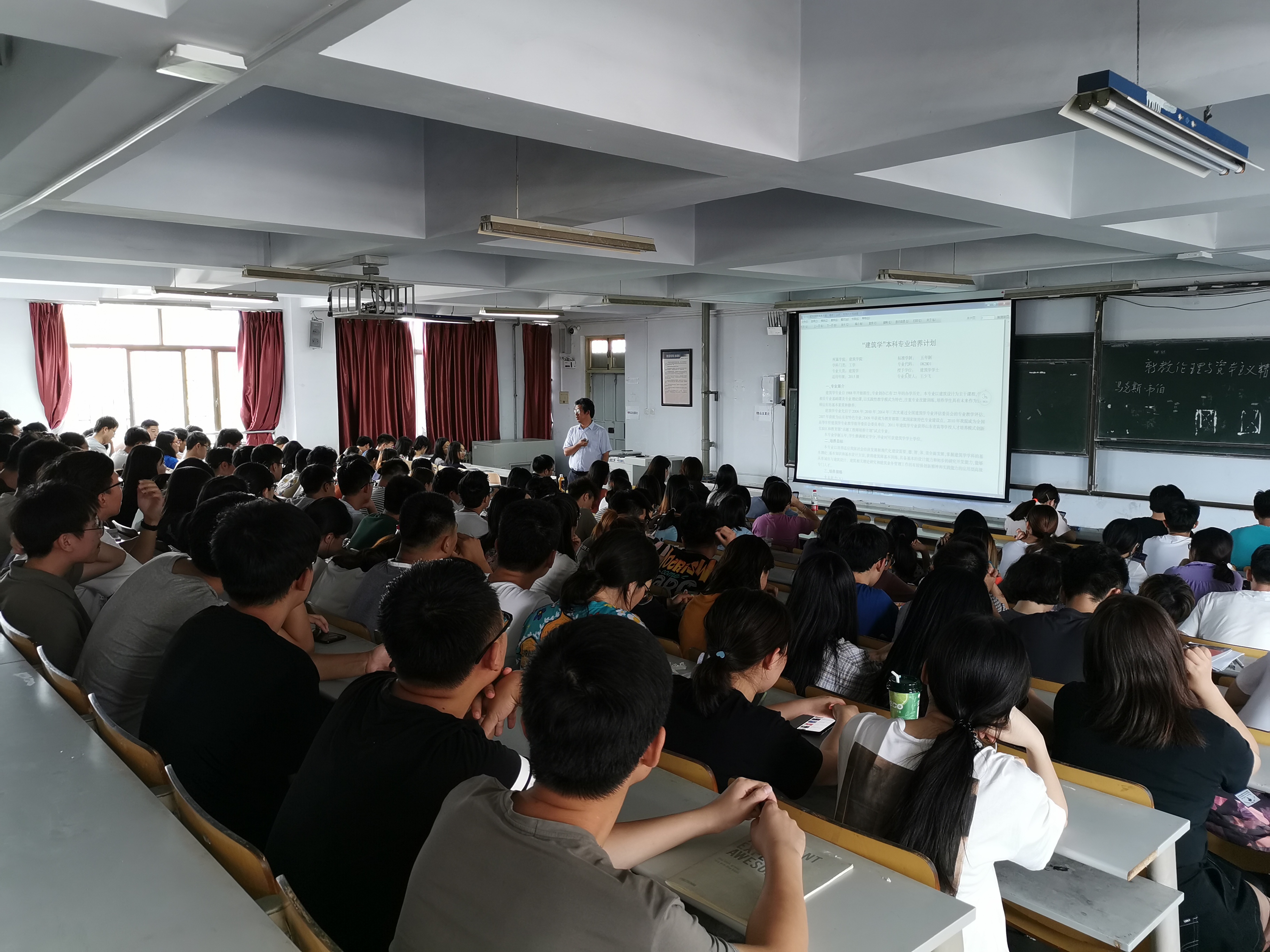 9月4日下午,建筑与城乡规划学院在一教300阶召开建筑学本科专业培养方案宣讲会,会议由建筑系系主任王少飞主讲,全体2016级建筑学专业本科生参加宣讲会。