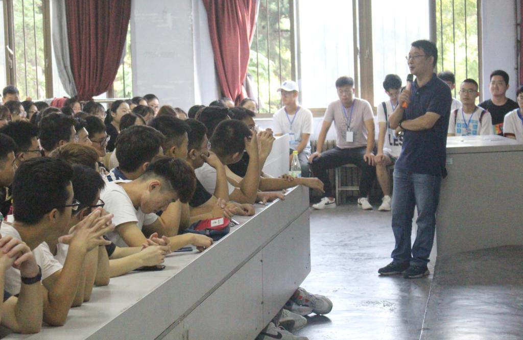 高江首先对各位2019级萌新们到来表示欢迎,随后他介绍了学校、学院发展情况。他指出青年学生是学校发展的根本,近年来学校大力引进青年博士,增强师资力量,改进食堂、洗手间,打造幸福理工,更为尊重学生,相信以后一定会发展的更好;学院的本科专业都为山东省一流本科专业,建筑学一级学科为山东省重点学科,建筑学、城乡规划专业相继通过专业评估,学院在学风建设、社会实践、对外交流上都在努力奋进,保持学院良好的发展势头,未来也一定会更好,希望同学们在好地方,上好学校,念好专业,成长为好青年。