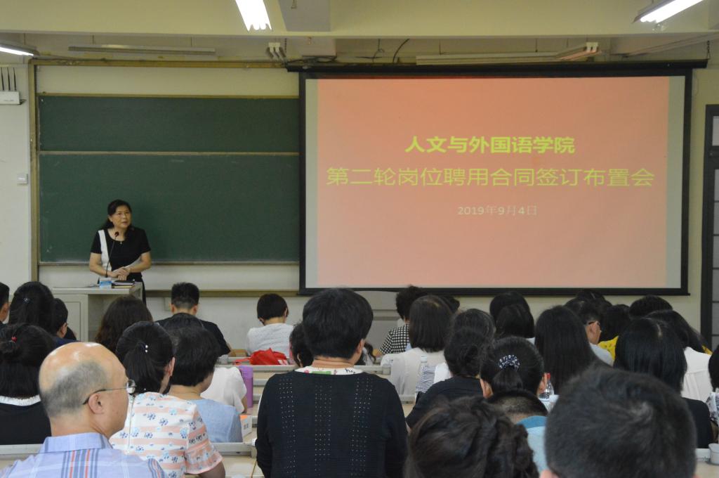 9月4日下午,人文与外国语学院在嘉陵江路校区B204召开新学期全体教职工大会,会议由党总支书记王新主持。