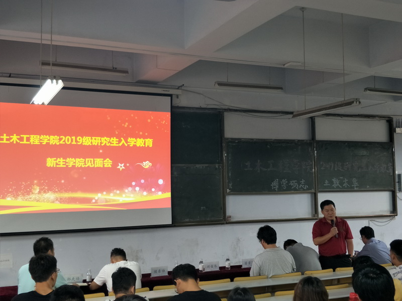 为使2019级研究生新生更好的熟悉学校生活,了解学院基本情况,9月4日下午,土木工程学院于一教200阶召开2019级研究生新生见面会,学院党总支书记曲成平、院长苗吉军、副院长张纪刚、张鹏、刘俊伟、分团委书记王中帅及全体辅导员出席本次大会, 大会由党总支副书记邵先锋主持。