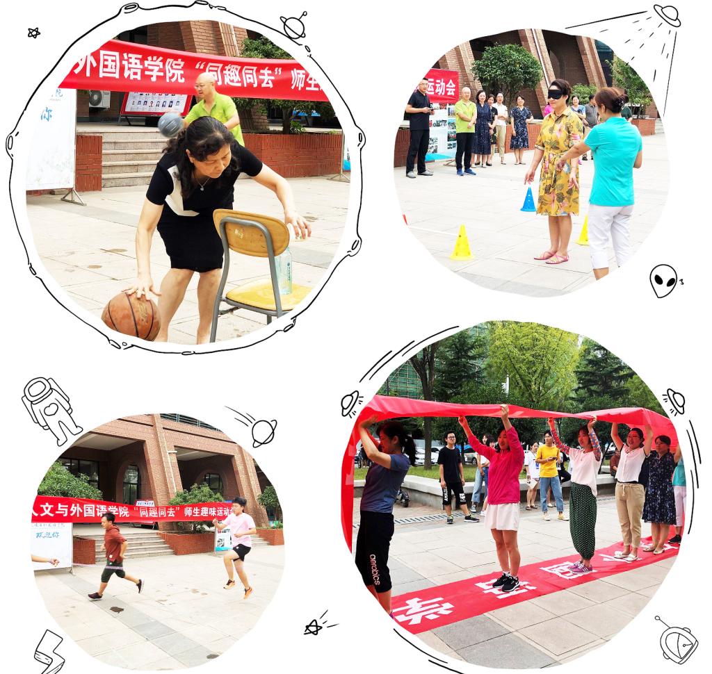 师生同趣,携手共进!教师节来临之际,人文与外国语学院于9月11日下午三点在教学楼前闲置场地举办“同趣同去”师生趣味运动会,以师生联合趣味游戏为主体,以师生对抗为主要形式,三十余人师生共参与。师生趣味运动会设有四个娱乐性项目:无敌风火轮、仙人指路、接力蓄水和跳大绳。活动循序渐进,参与的师生们热情高涨。在丰富教职工文化生活的同时,促进师生之间的沟通交流,增强教职工和学生的凝聚力,增进师生友谊。
