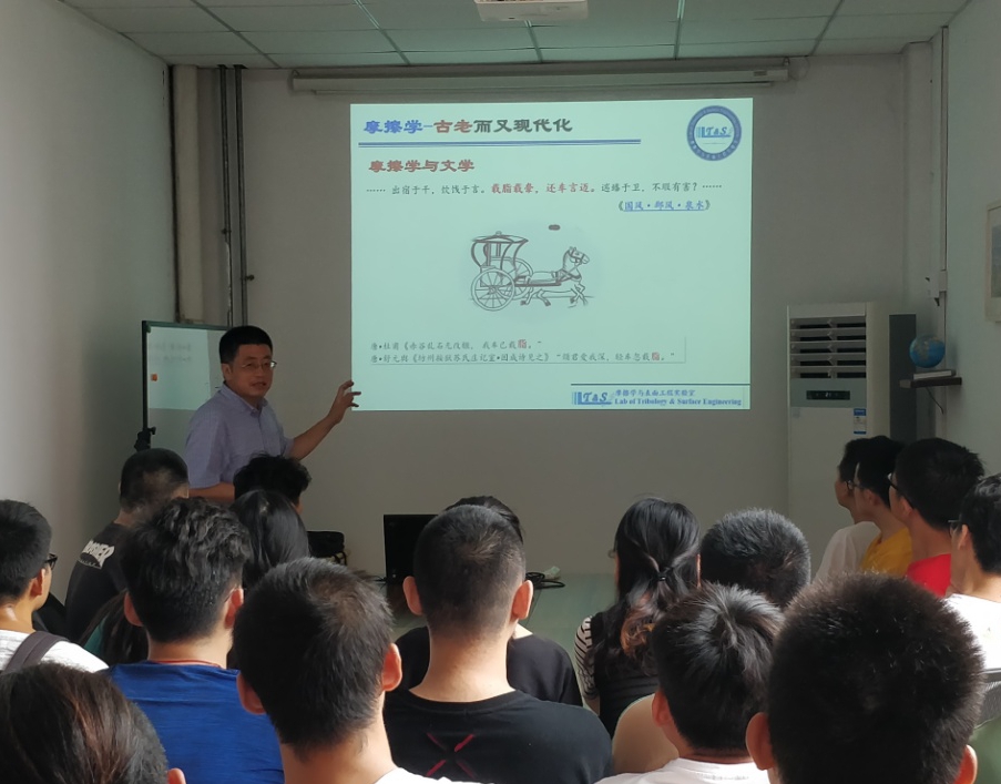 本次活动学生参与人数达到120余人,包括80余名机械与汽车工程学院本科生以及来自凤凰岛小学五年级的40余名学生及家长。首先郭峰教授通过“探寻摩擦学”报告,为学生们展开了一幅从钻木取火到高科技鲨鱼皮泳衣、从指南车到人工关节的摩擦学历史画卷。并从日常生活、体育运动、大自然、人体、民用、国防工业等方面为同学们介绍了诸多有趣的摩擦学现象。同学们还从中了解到了纳米小车、微机电等摩擦学的前沿科技。