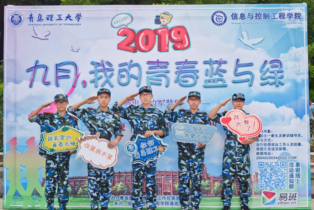 英姿矫健,军装飒爽。青岛理工大学19级全体新生整装待发,迎来了大学的第一堂课——军训。为给新生们留下有自己风格、特点的军装照,9月14日至9月15日,由学生工作处易班发展中心主办,信息与控制工程学院承办的“九月,我的青春蓝与绿——晒出我的军装照”活动在嘉陵江路校区主教学楼前小广场举行。