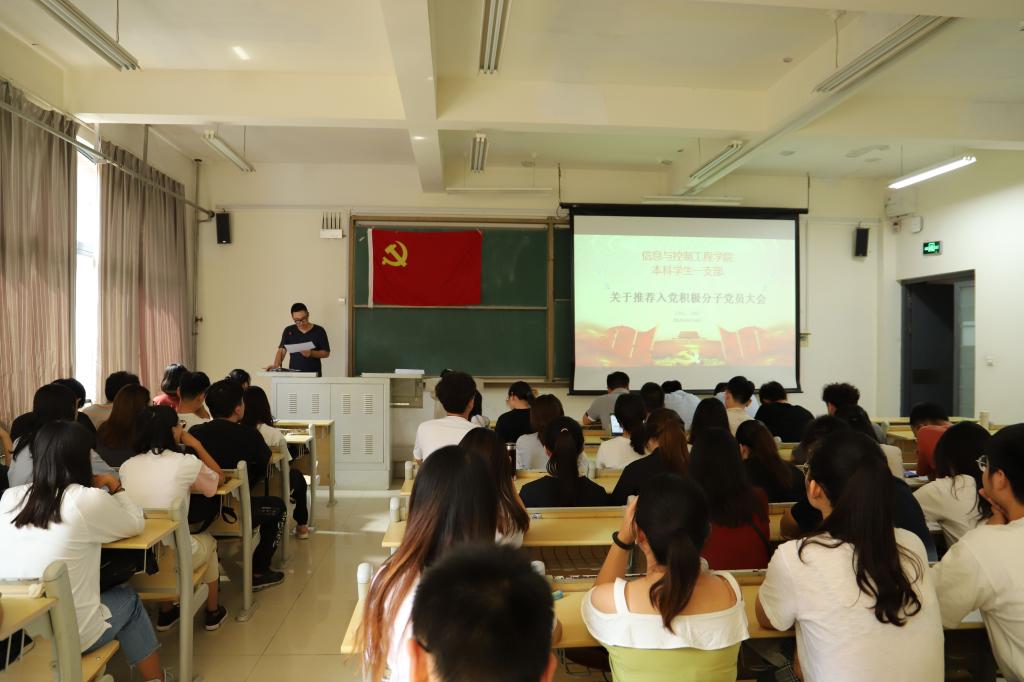 为保持党支部生机活力,加强党员党性修养和担当,9月16日,信息与控制工程学院本科学生一支部在嘉陵江路校区召开了党员大会,研究确定新一批入党积极分子事宜,并对即将开展的“不忘初心、牢记使命”主题教育进行动员和部署。支部书记刘田、组织委员刘荣稳、宣传委员高腾飞和34名学生党员参加了会议,刘田主持会议。