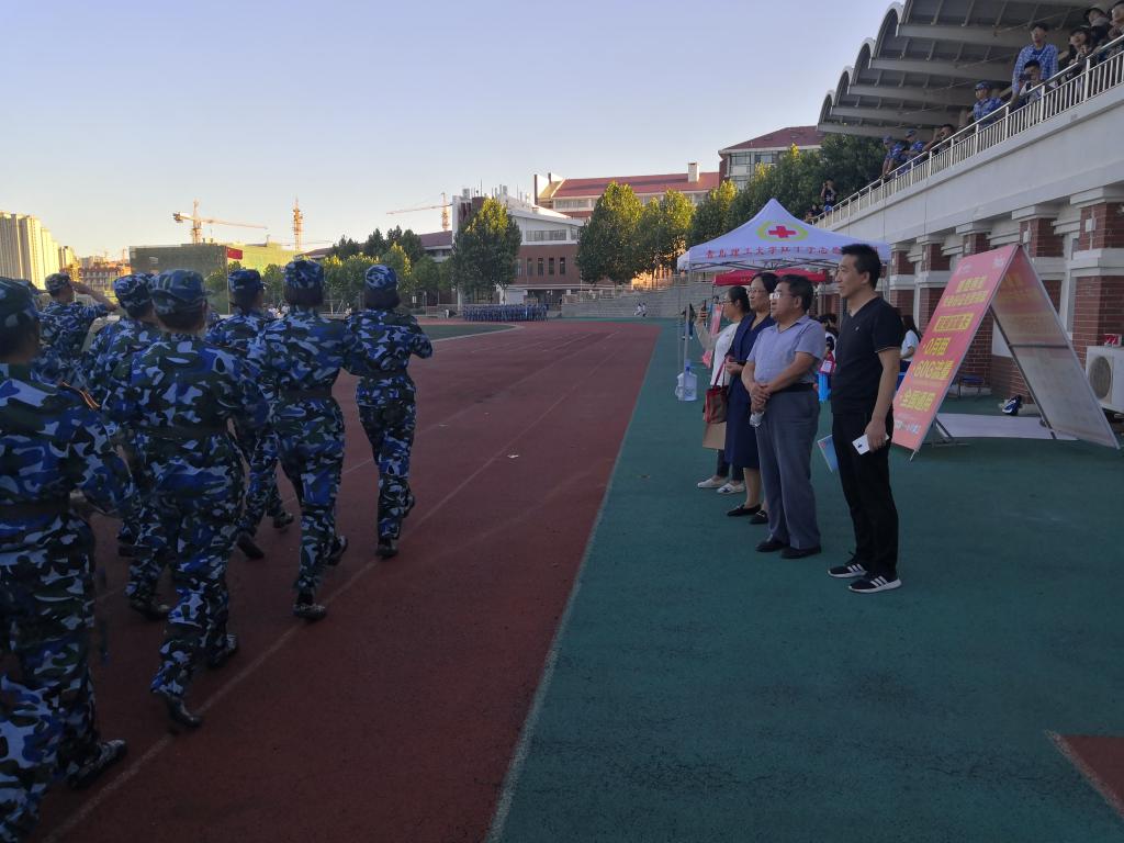 训练场上,学院2019级新生朝气蓬勃、规范整齐地进行着军事训练。学院领导来到队列方阵前,与教官们亲切交流,感谢教官们的指导和训练,对承接新生军训任务的教官们表示了衷心的感谢,并给教官们发放了慰问品。学院领导对广大新同学在训练中饱满的热情和昂扬的斗志予以充分肯定,勉励同学们要刻苦训练,希望此次军训可以成为人生中一段宝贵的经历,通过军训将军人的优良作风得以传承,培养坚毅品质,为自己今后的学习和生活打下良好的基础。